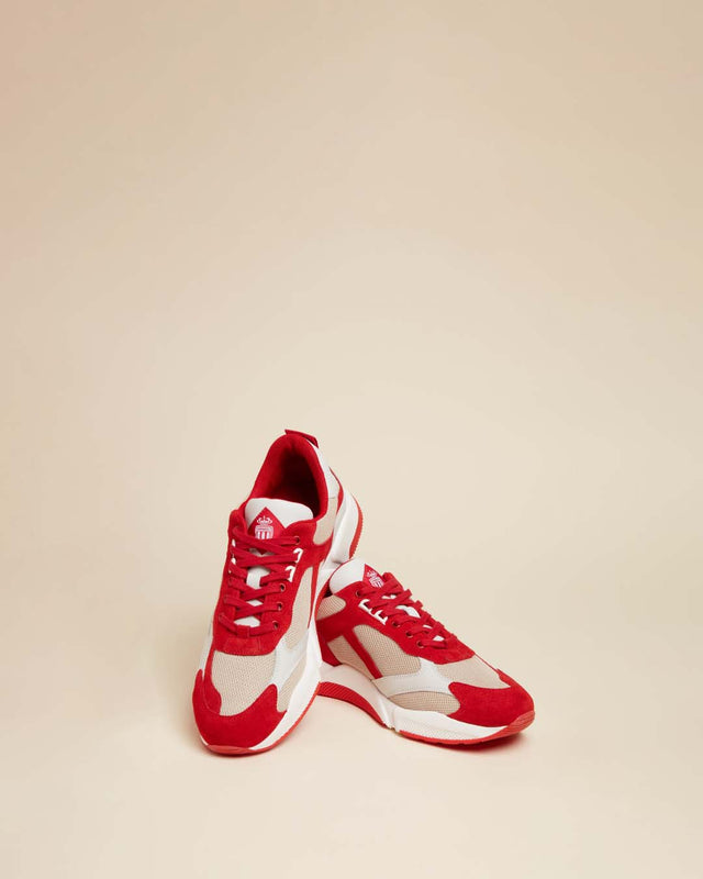 sérigraphie sur le devant, ou encore la semelle bicolore rouge et blanche, sans oublier les lacets supplémentaires blancs... Chaque détail est imaginé et conçu avec soin, comme symbole de notre ADN