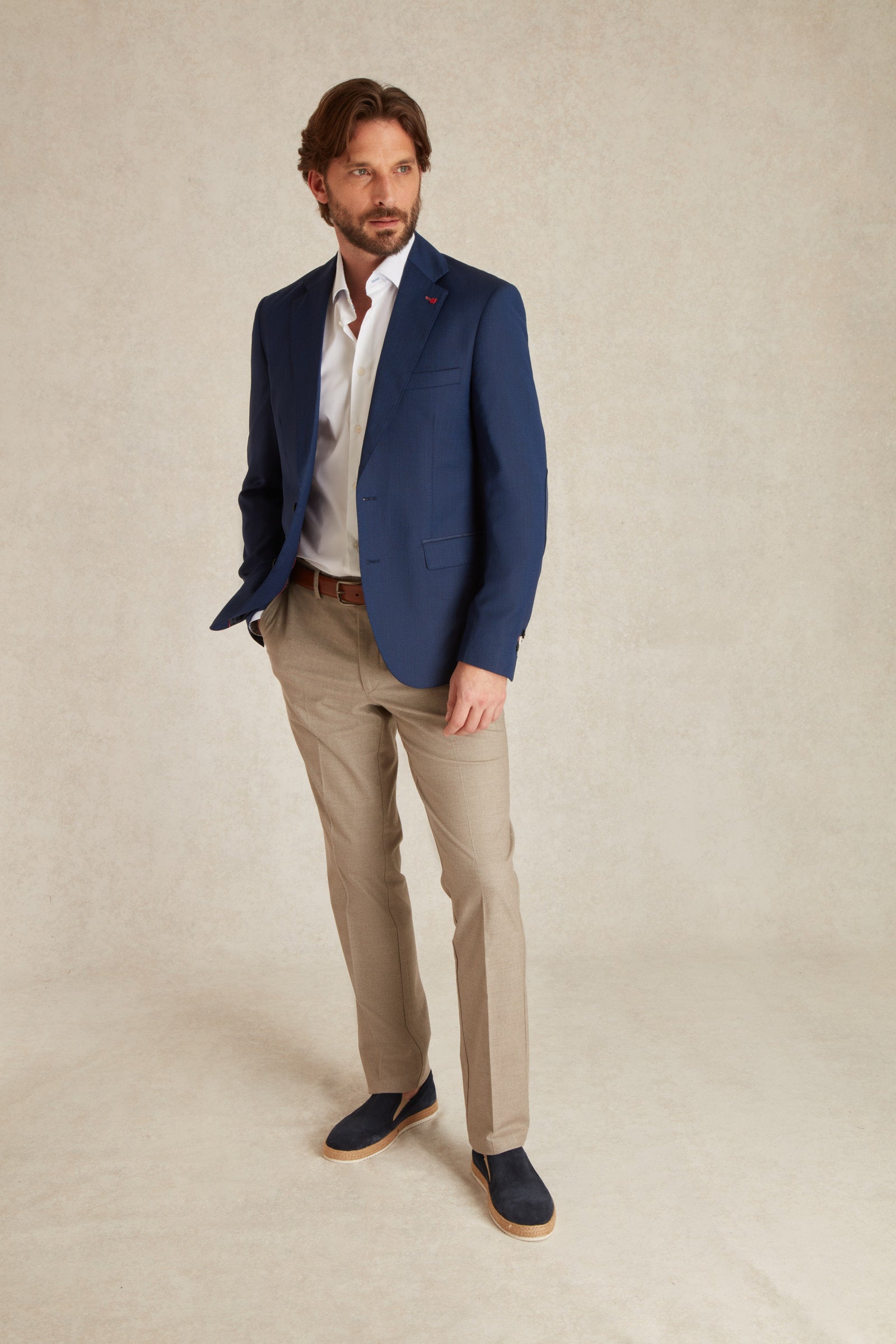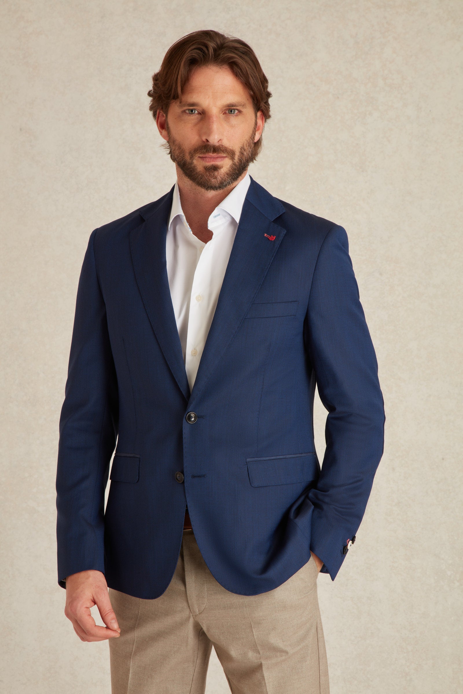 Notre Blazer en laine froid texturé sera idéal pour toutes les saisons. Avec sa laine froide, il sera vous apporter chaleur pendant l'hiver mais également grâce à son tissage qui permet de vous réguler même durant votre été.