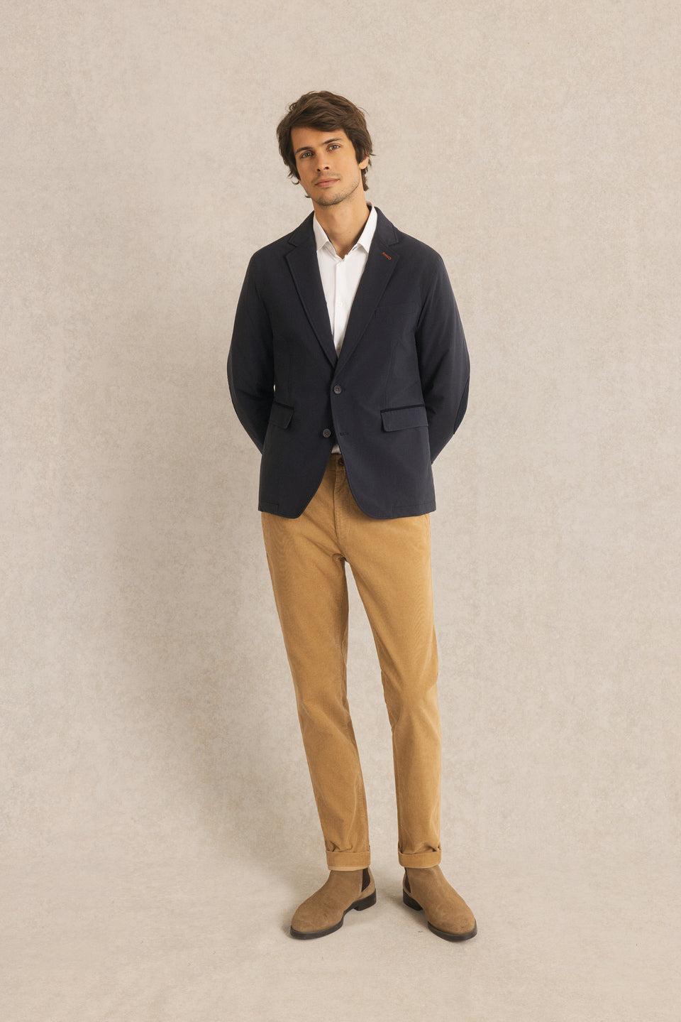 Ce blazer bleu marine repousse les codes du tailoring classique en y ajoutant une touche inattendue : la technicité d’une doudoune légère. Idéal pour affronter les matins frais sans sacrifier le style, il combine allure structurée et confort absolu.