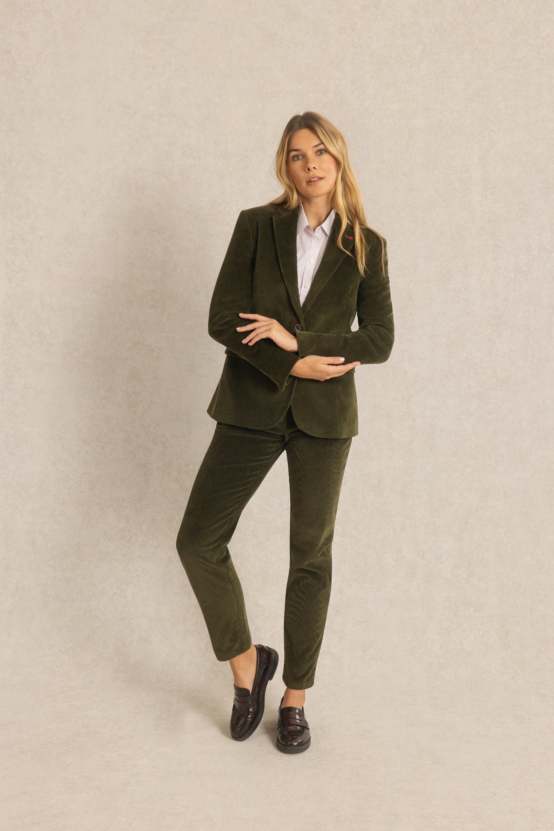Avec sa coupe féminine et son velours côtelé au charme rétro, le blazer Betina impose une élégance douce et audacieuse à la fois.