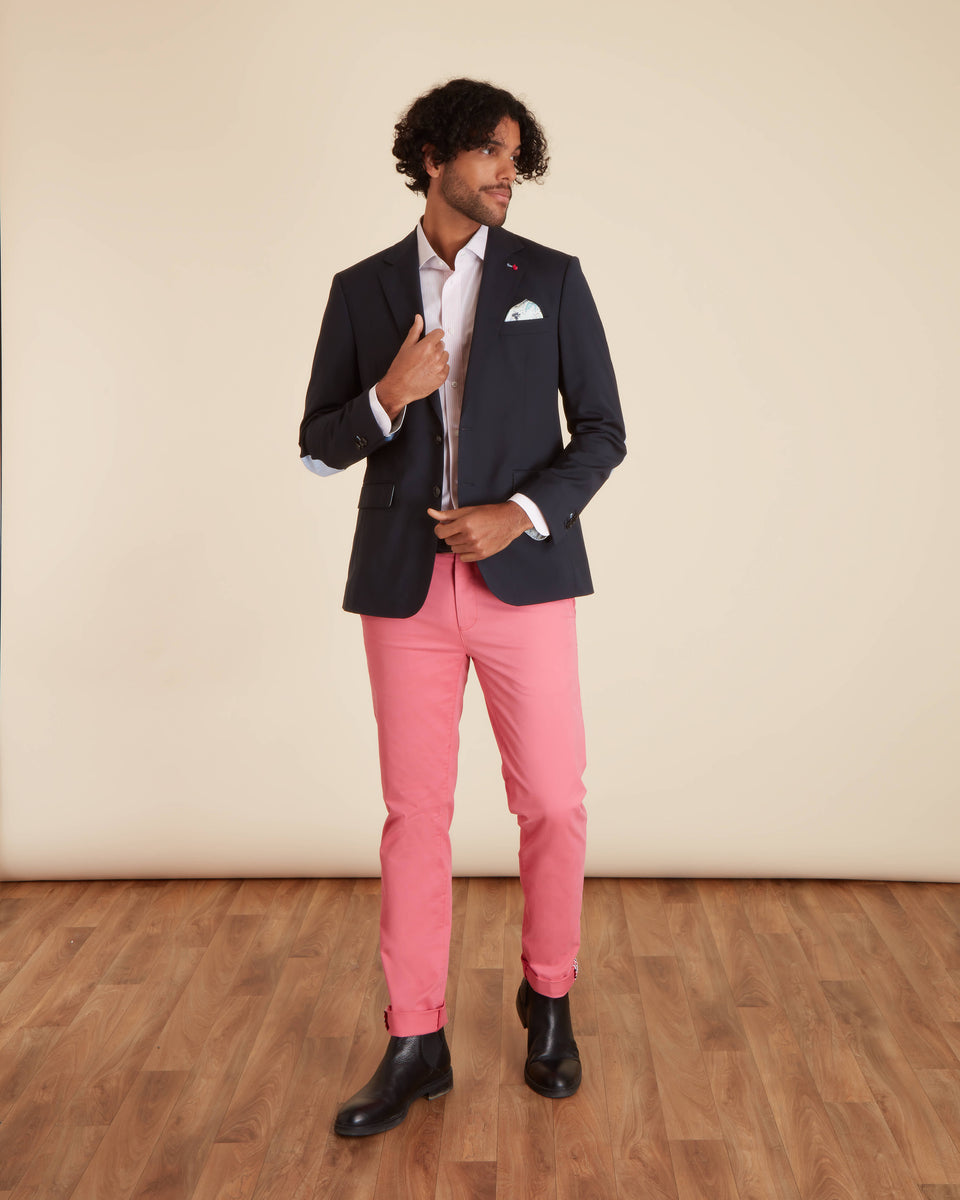 Le blazer Bastino incarne le savoir-faire et l’élégance moderne de Vicomte A. Avec sa coupe ajustée, il souligne parfaitement la silhouette masculine tout en offrant une grande liberté de mouvement.