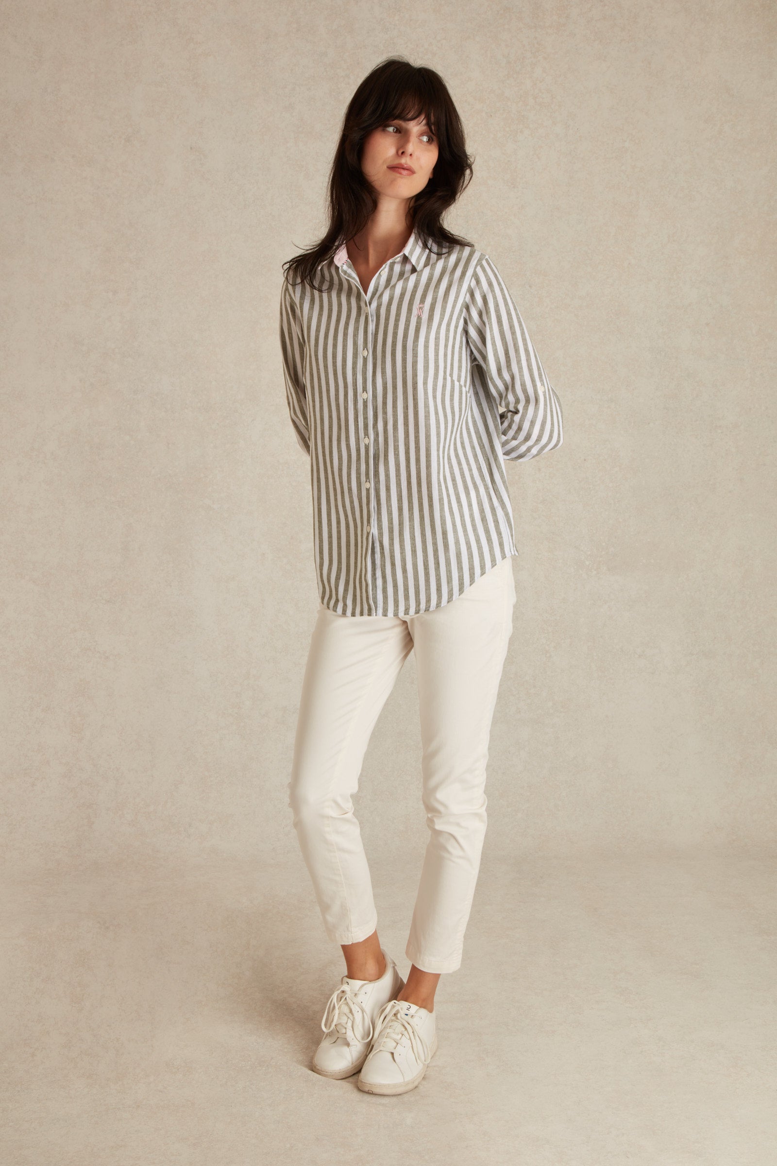 Détails : Manches retroussables avec détails rayures de couleur contrastée