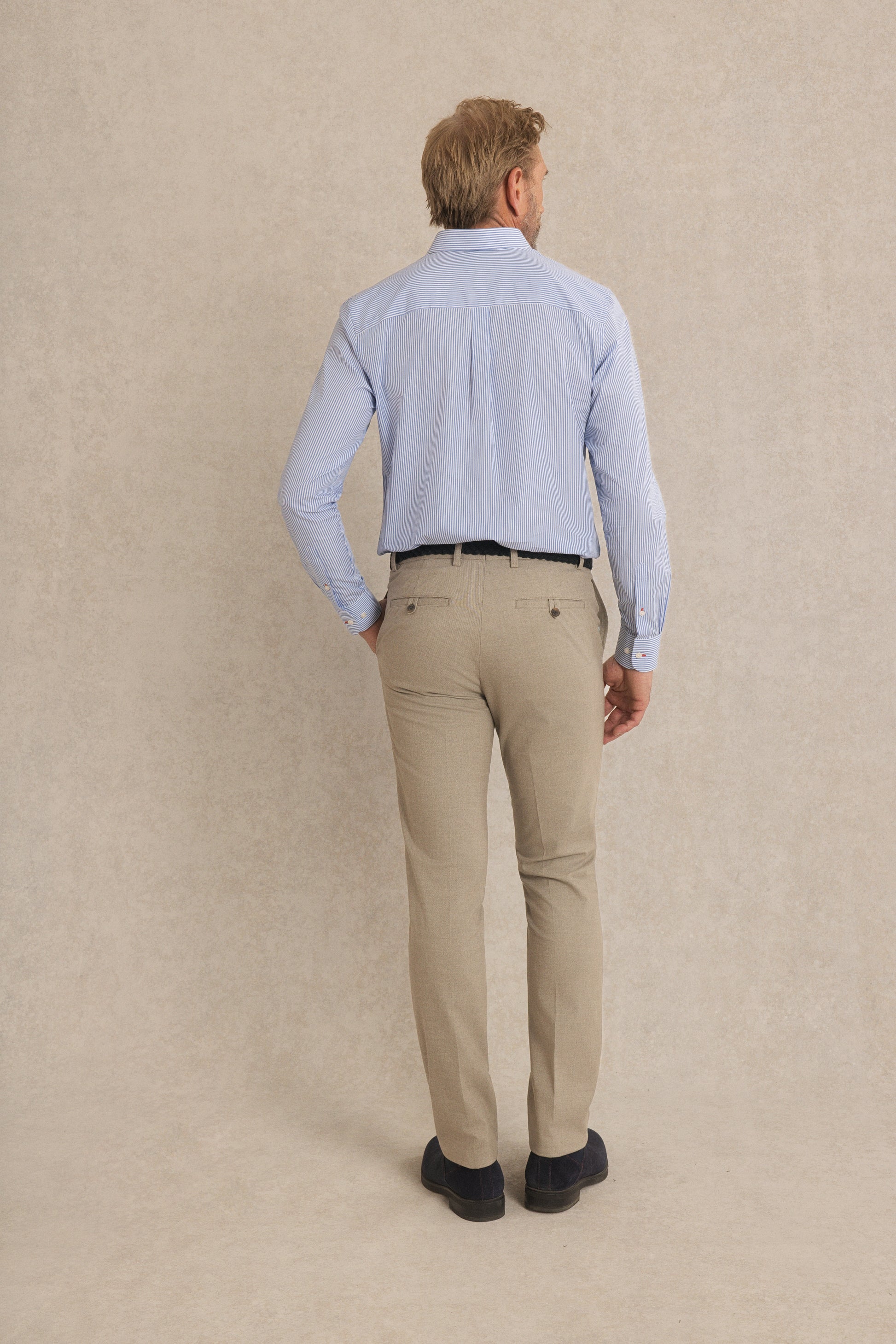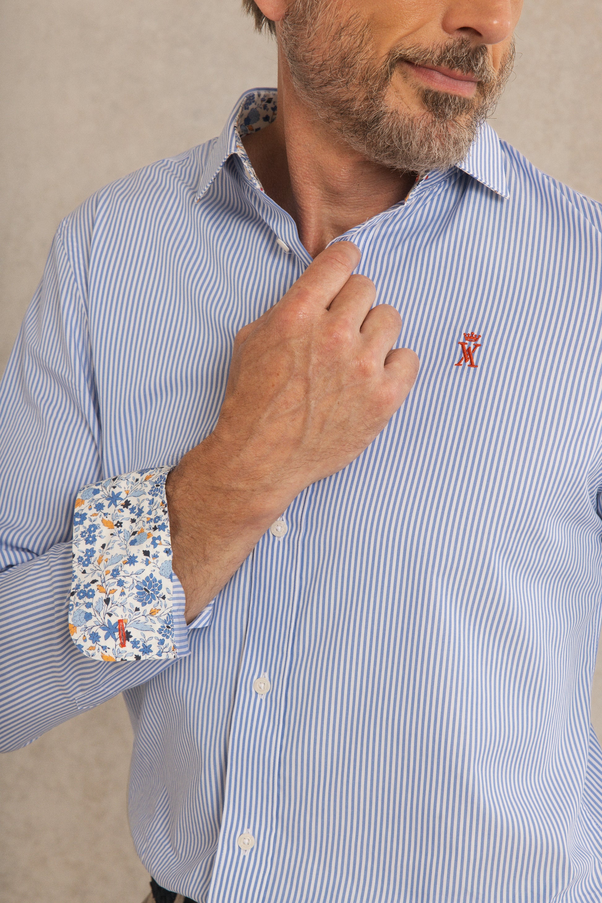 La chemise Conrad revisite un grand classique du vestiaire masculin avec ses fines rayures verticales.