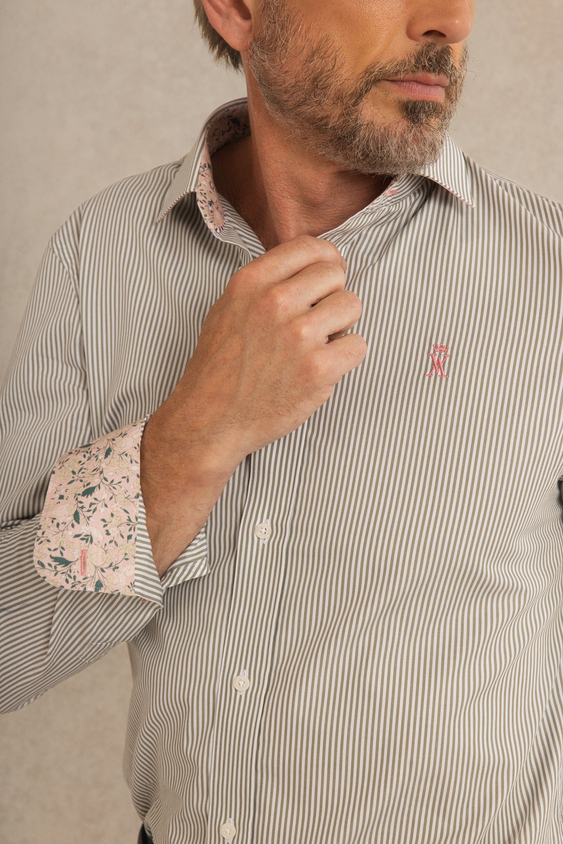 La chemise Conrad revisite un grand classique du vestiaire masculin avec ses fines rayures verticales.