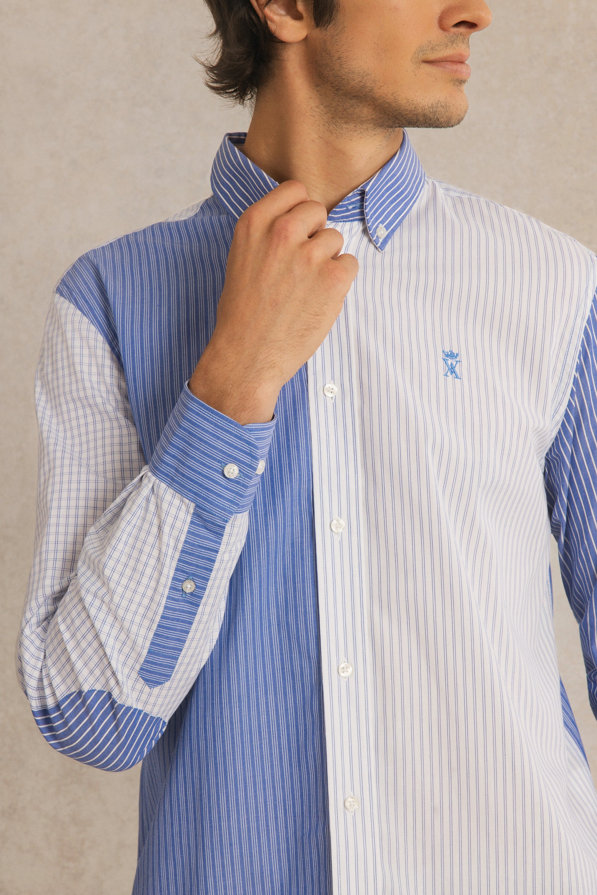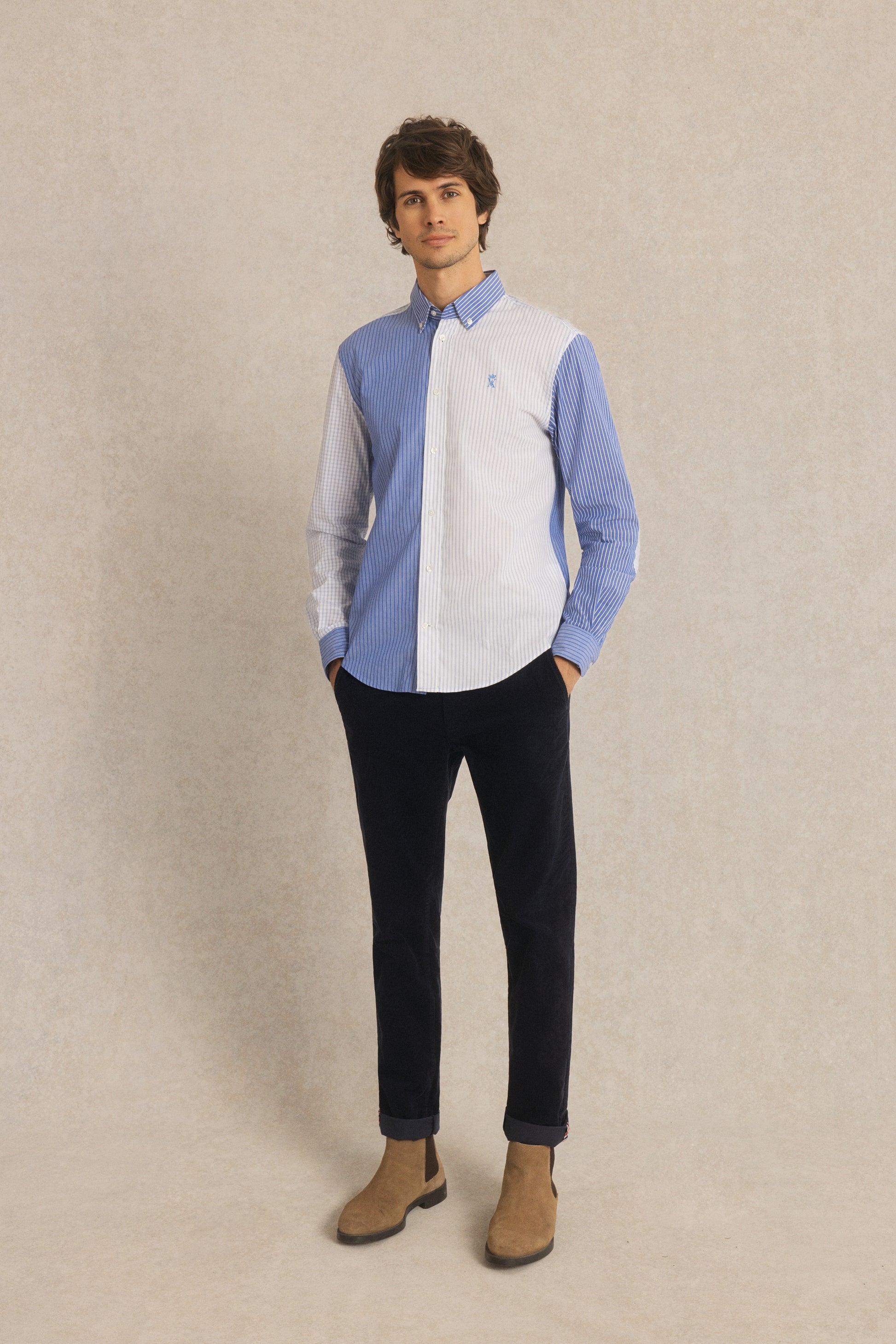 Avec son jeu de rayures contrastées et son montage multipatch, la chemise Carlo se distingue par un design audacieux et maîtrisé.