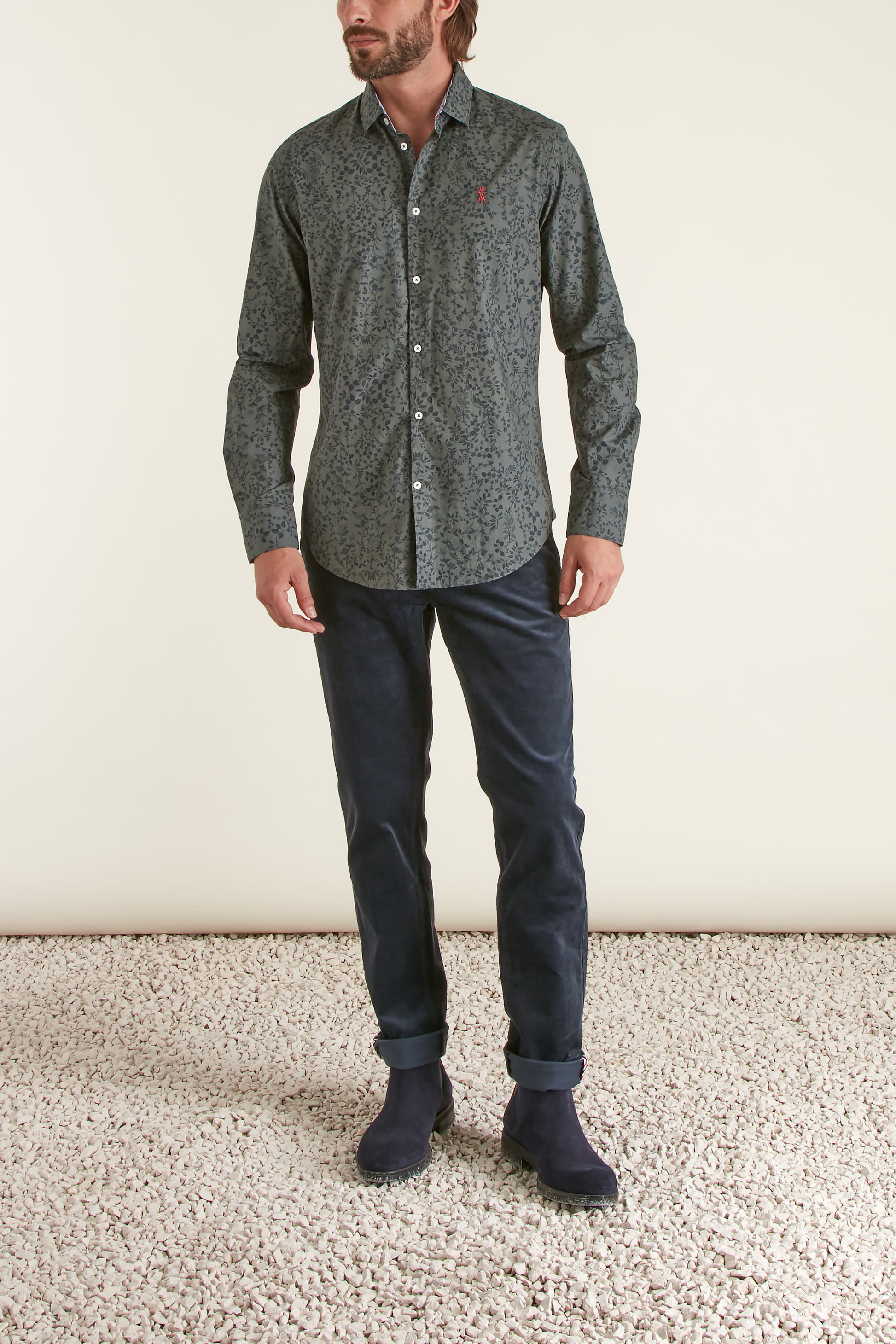 Cette chemise à la teinte lumineuse met en exergue un motif floral à l’intensité éclatante. Un subtil mélange entre audace et raffinement pour un style toujours aussi élégant.