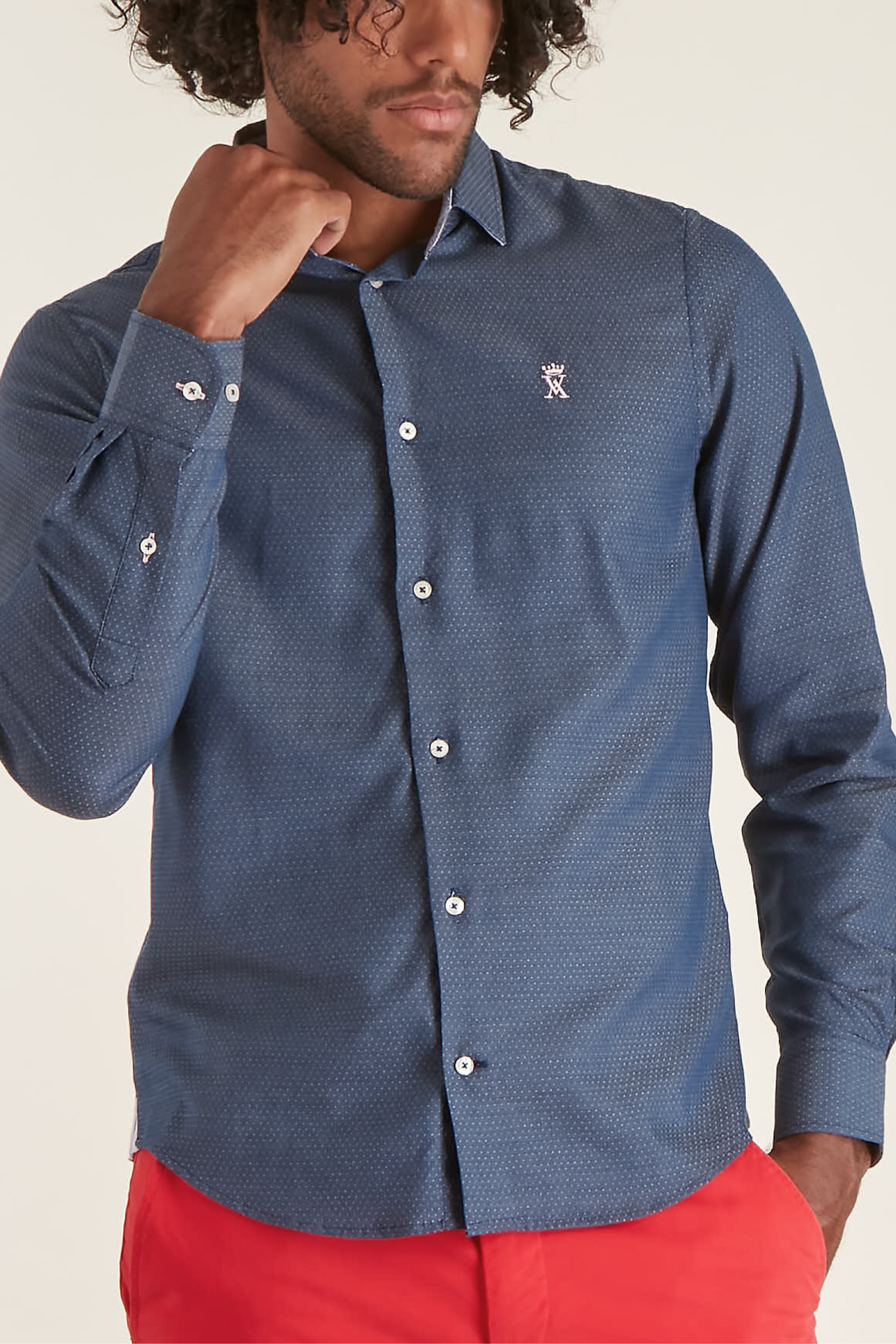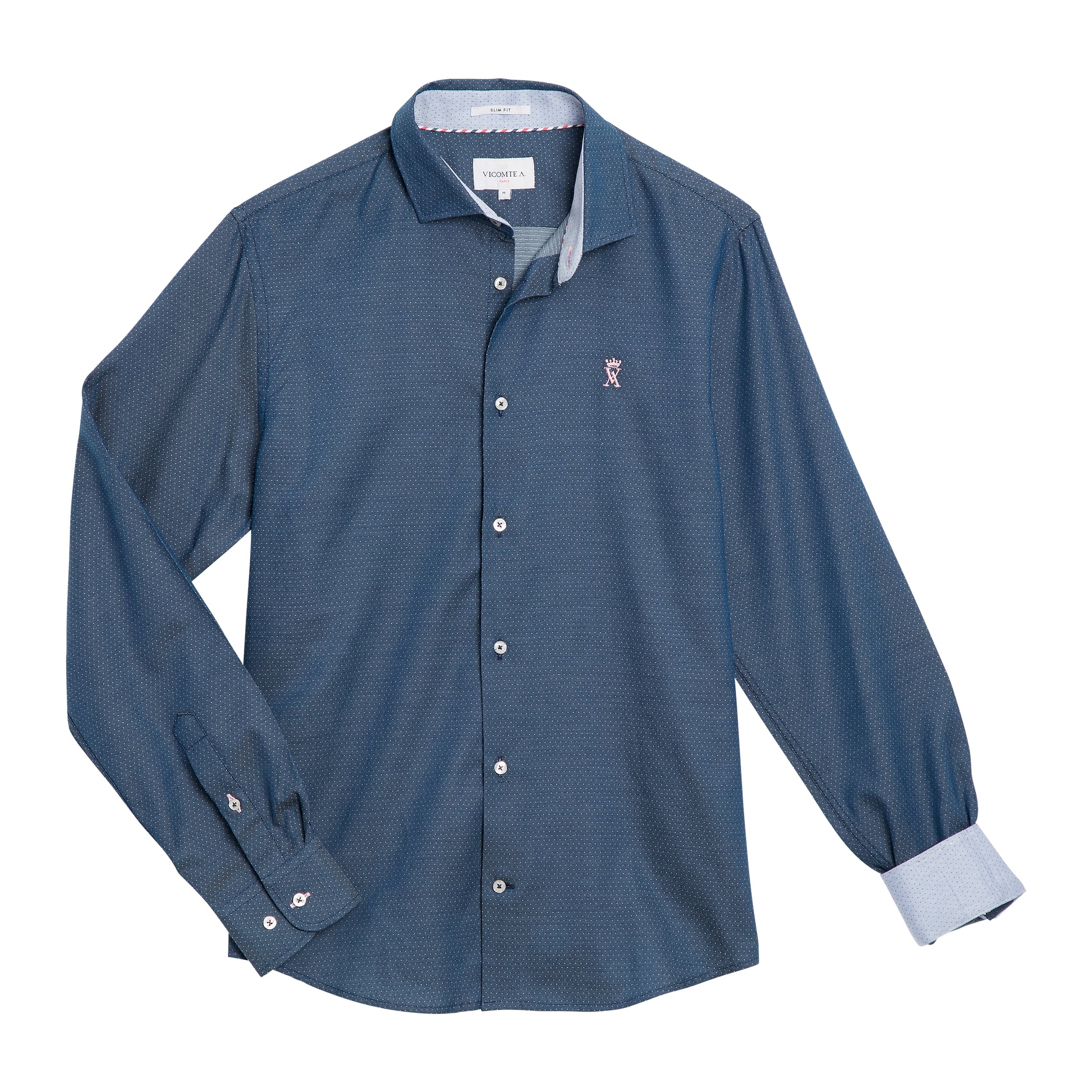 La chemise Clovis slim en 100% coton à micro pois est une pièce incontournable pour les hommes soucieux de leur style. Le motif à micro pois ajoute une touche d'originalité et de subtilité à la chemise ce qui en fait une chemise polyvalente.