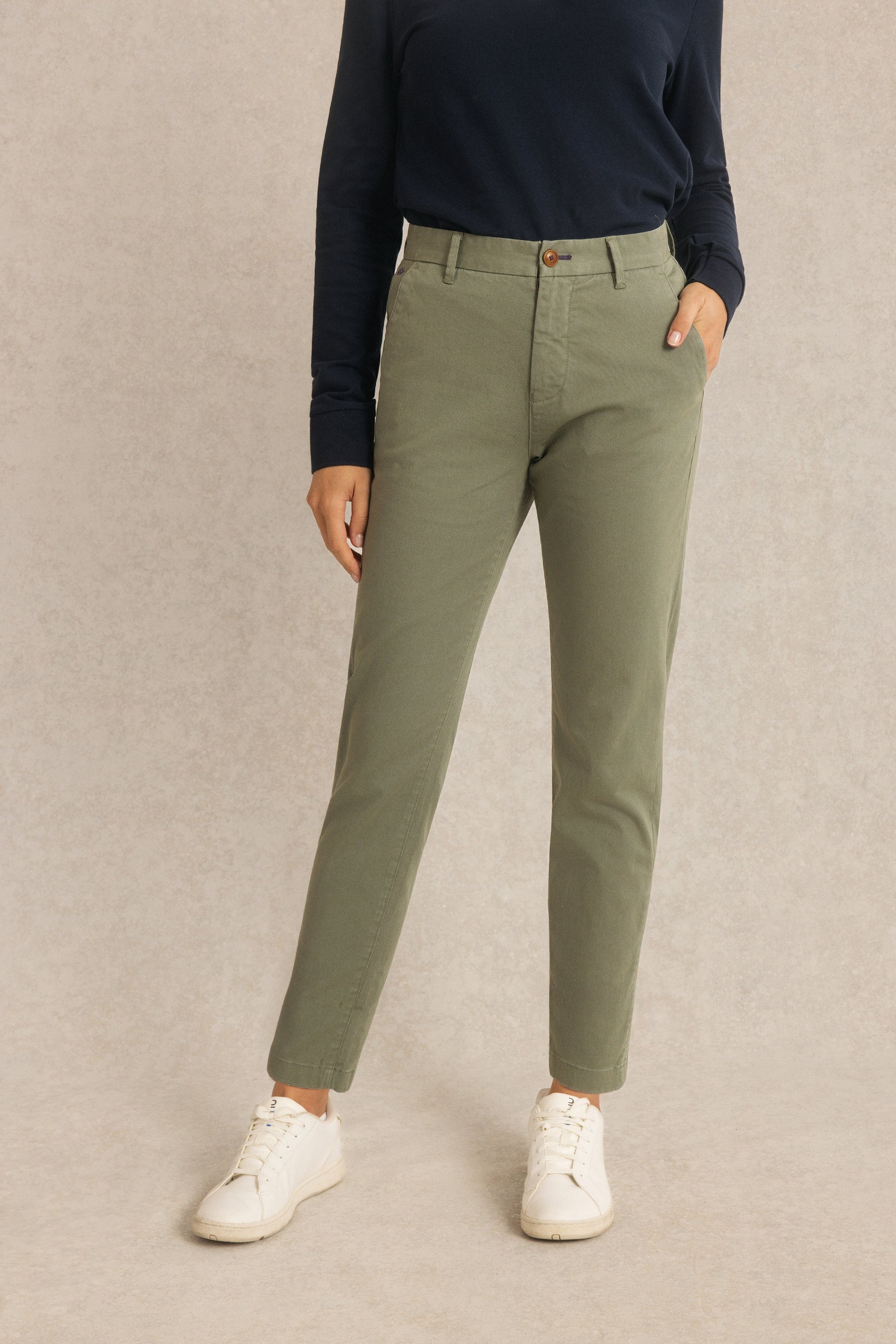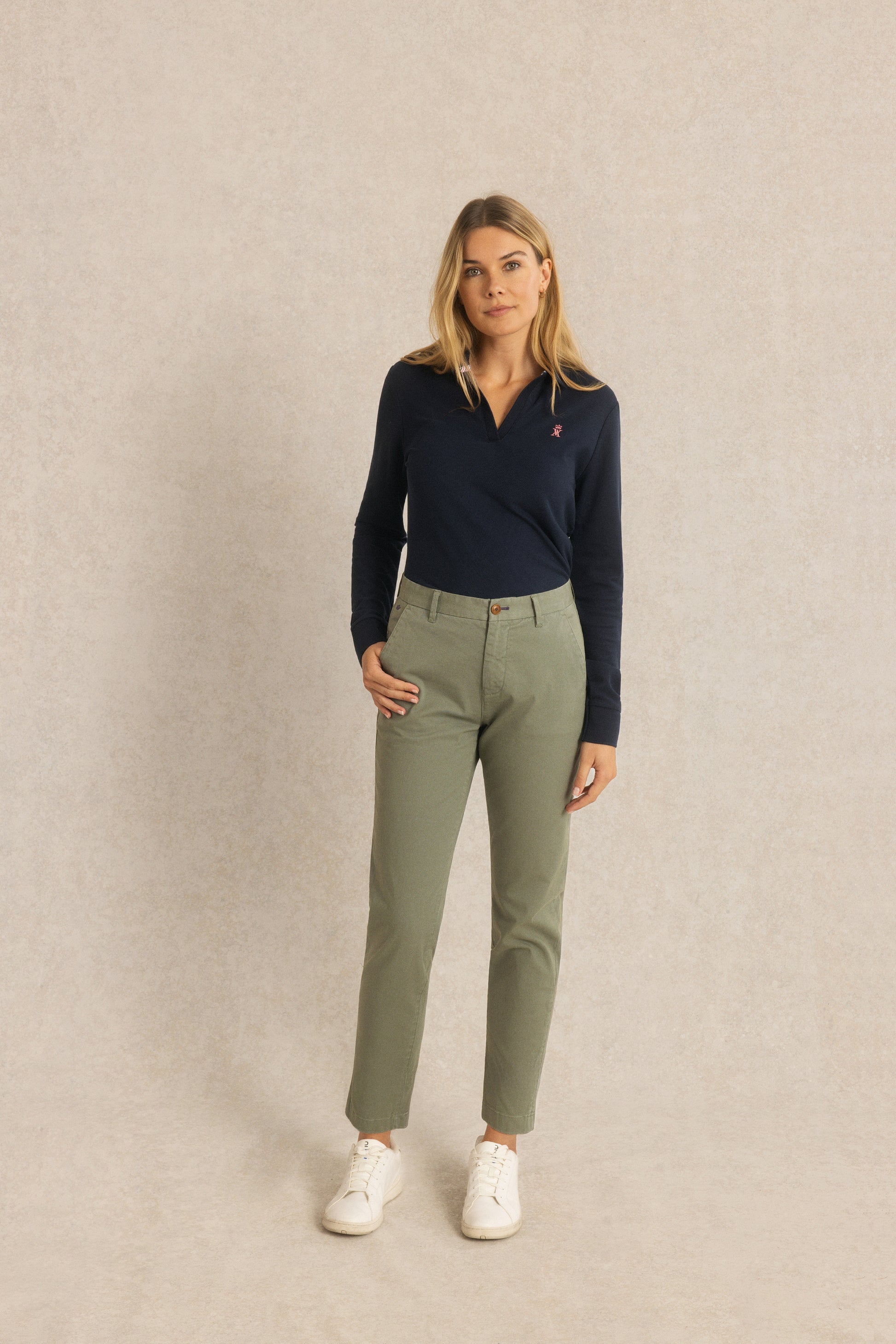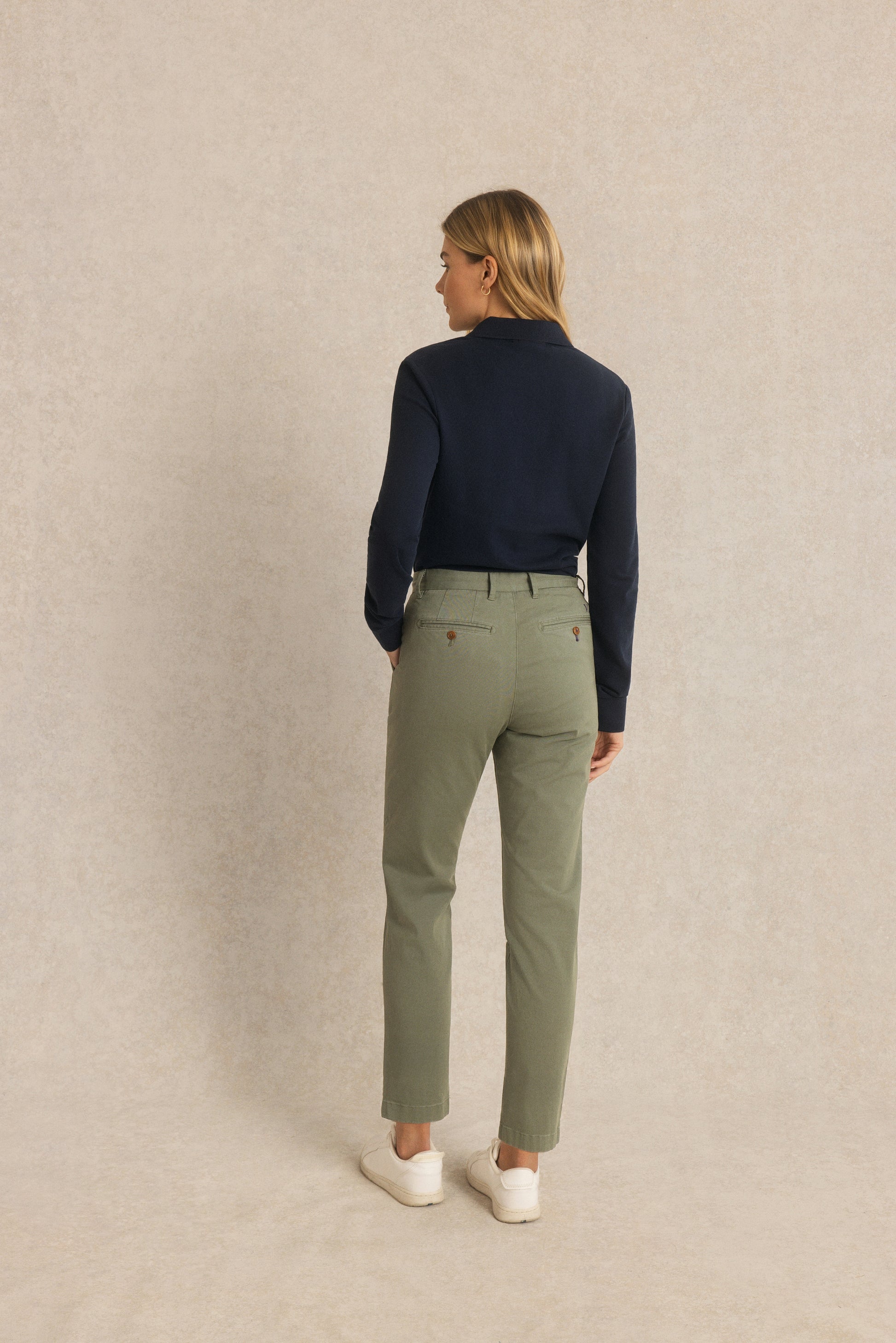 Le pantalon Lisa réinvente le chino classique dans une version féminine et confortable.