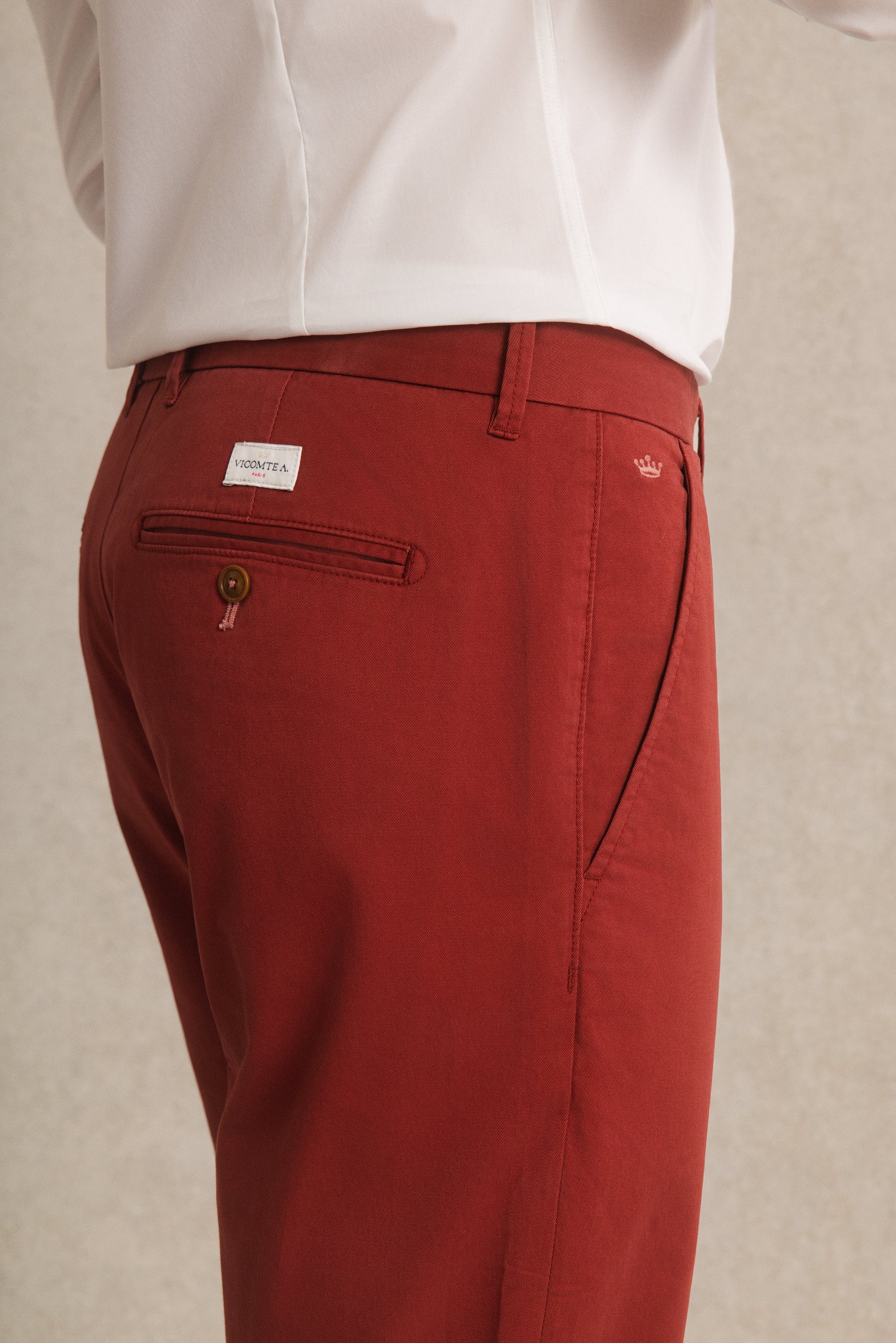 Le pantalon chino LORENZO Vicomte A. en Coton Uni est un incontournable du vestiaire reconnu pour son taillé impeccable et sa coupe casual. Vicomte A. revisite les classiques du dressing masculin avec sa petite touche d'impertinence qui vous donnera une allure chic et décontractée.