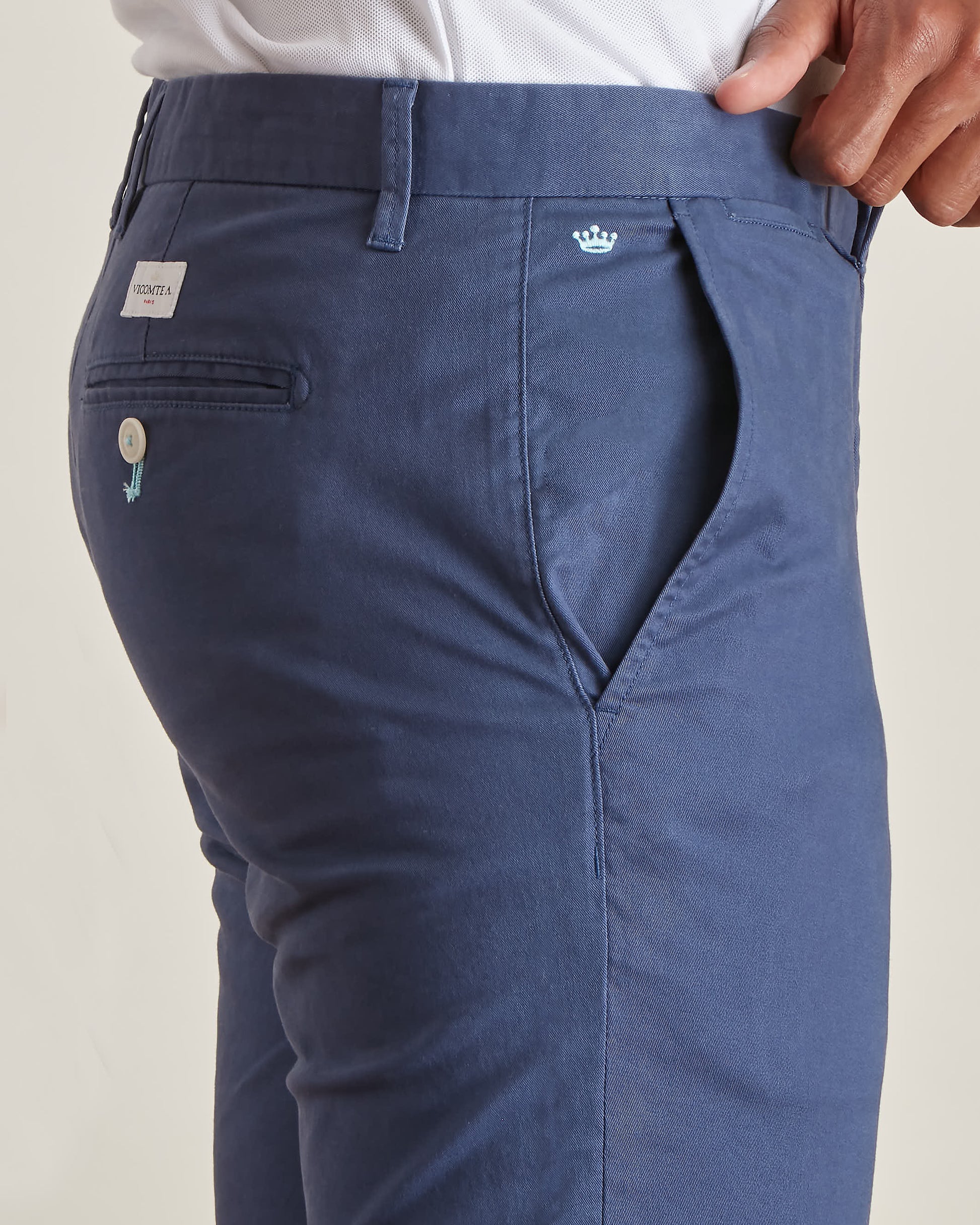 Le pantalon chino LORENZO Vicomte A. en Coton Uni est un incontournable du vestiaire reconnu pour son taillé impeccable et sa coupe casual. Pour l'été, Vicomte A. revisite les classiques du dressing masculin avec sa petite touche d'impertinence qui vous donnera une allure chic et décontracté.