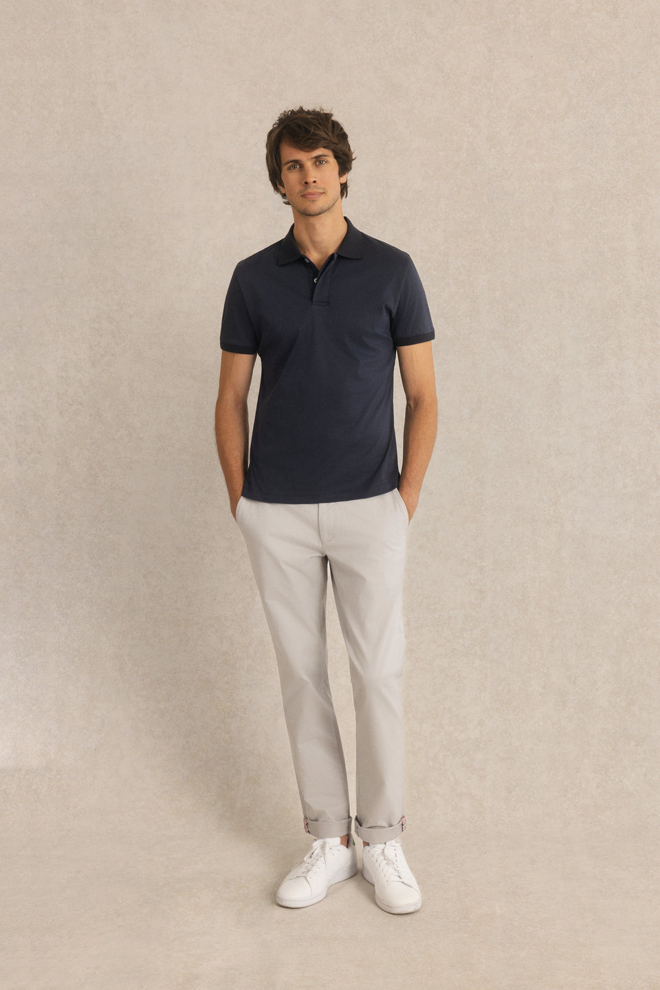Essentiel du vestiaire Vicomte A., le polo Homme PIERRINO uni à manches courtes mise sur une matière en jersey doux et souple qui assure un confort optimal au quotidien. Son design épuré est subtilement dynamisé par des finitions en bord-côtes au col, aux manches et à l’ourlet, pour une silhouette nette et bien tenue.