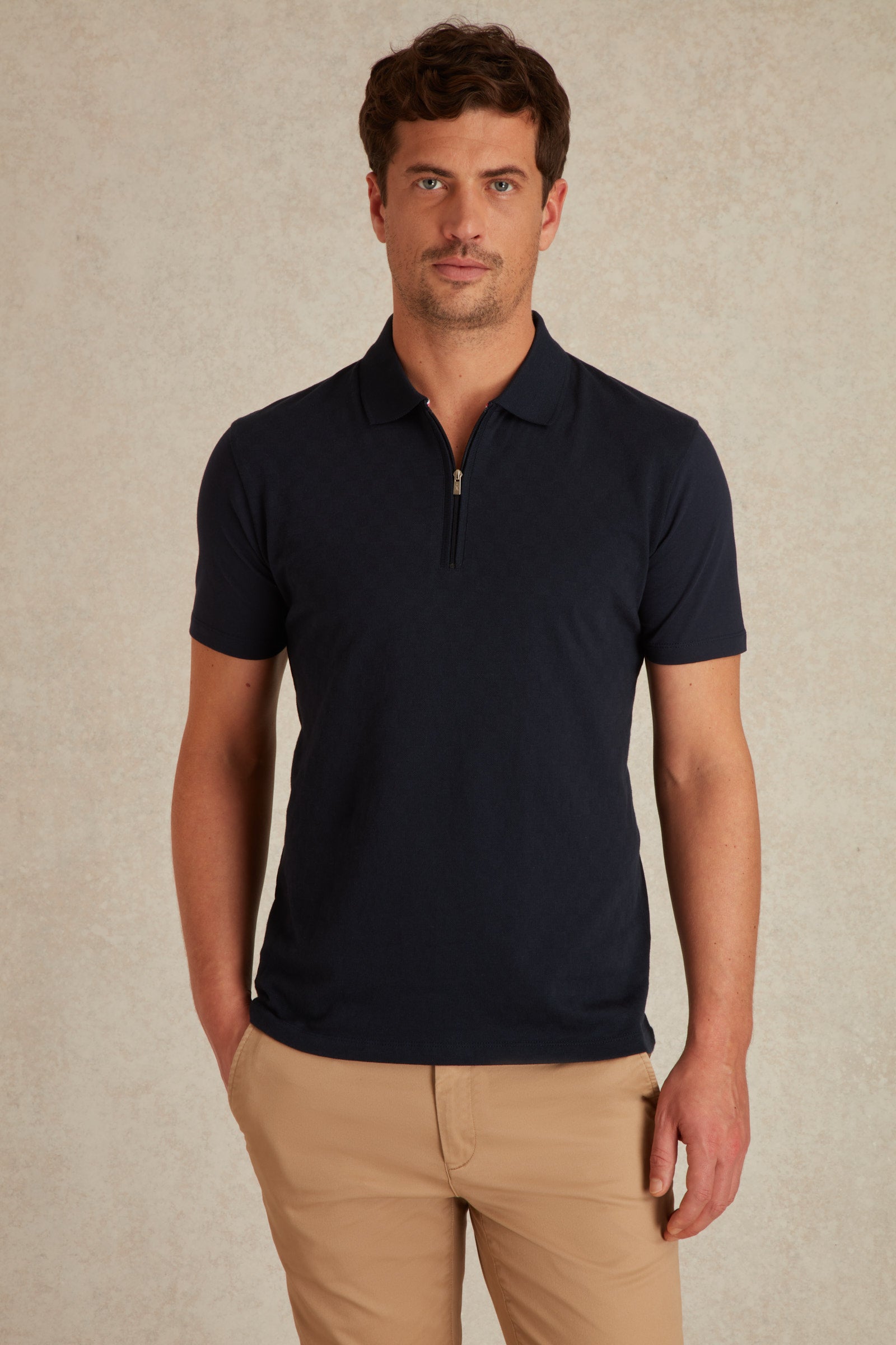 Le polo Pepino séduit par son raffinement discret et son confort absolu. Confectionné en 100 % coton Pima, une fibre d’exception réputée pour sa douceur, sa résistance et sa tenue impeccable, il se distingue par un tissage mi-piqué original formant un motif géométrique subtil.