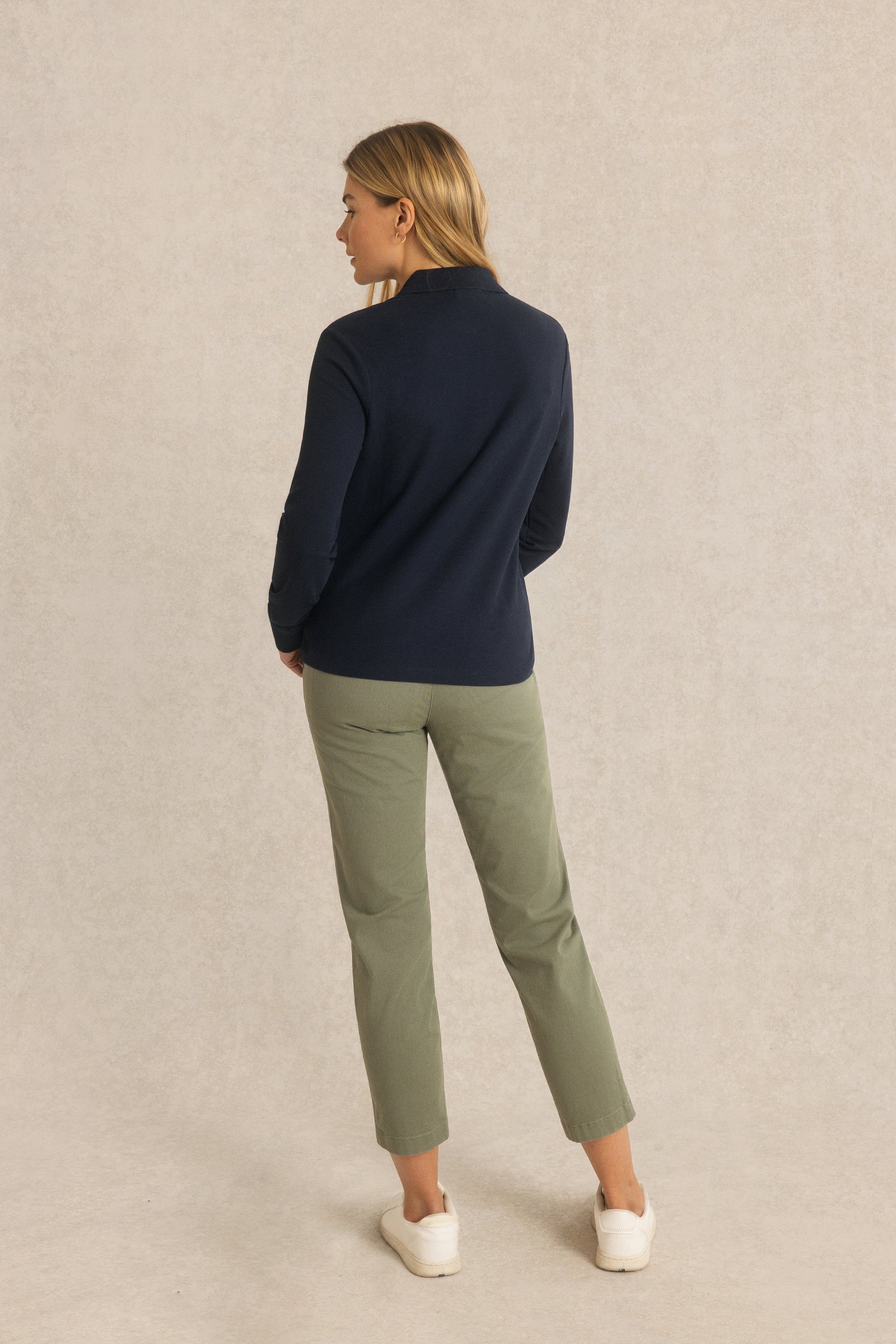 Le polo Priya revisite un classique du vestiaire féminin dans une version manches longues, idéale pour la mi-saison.