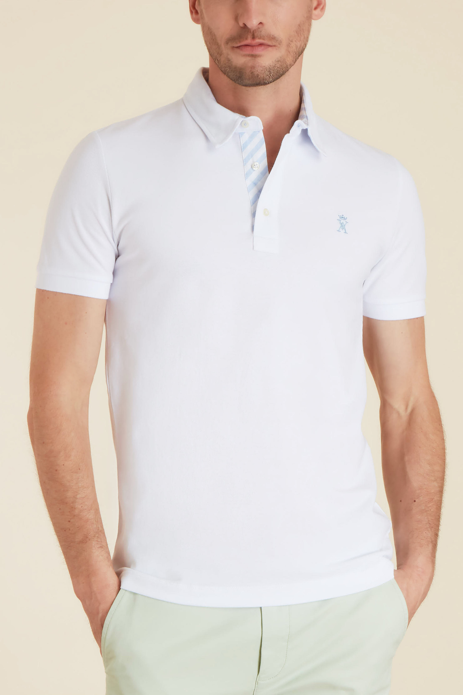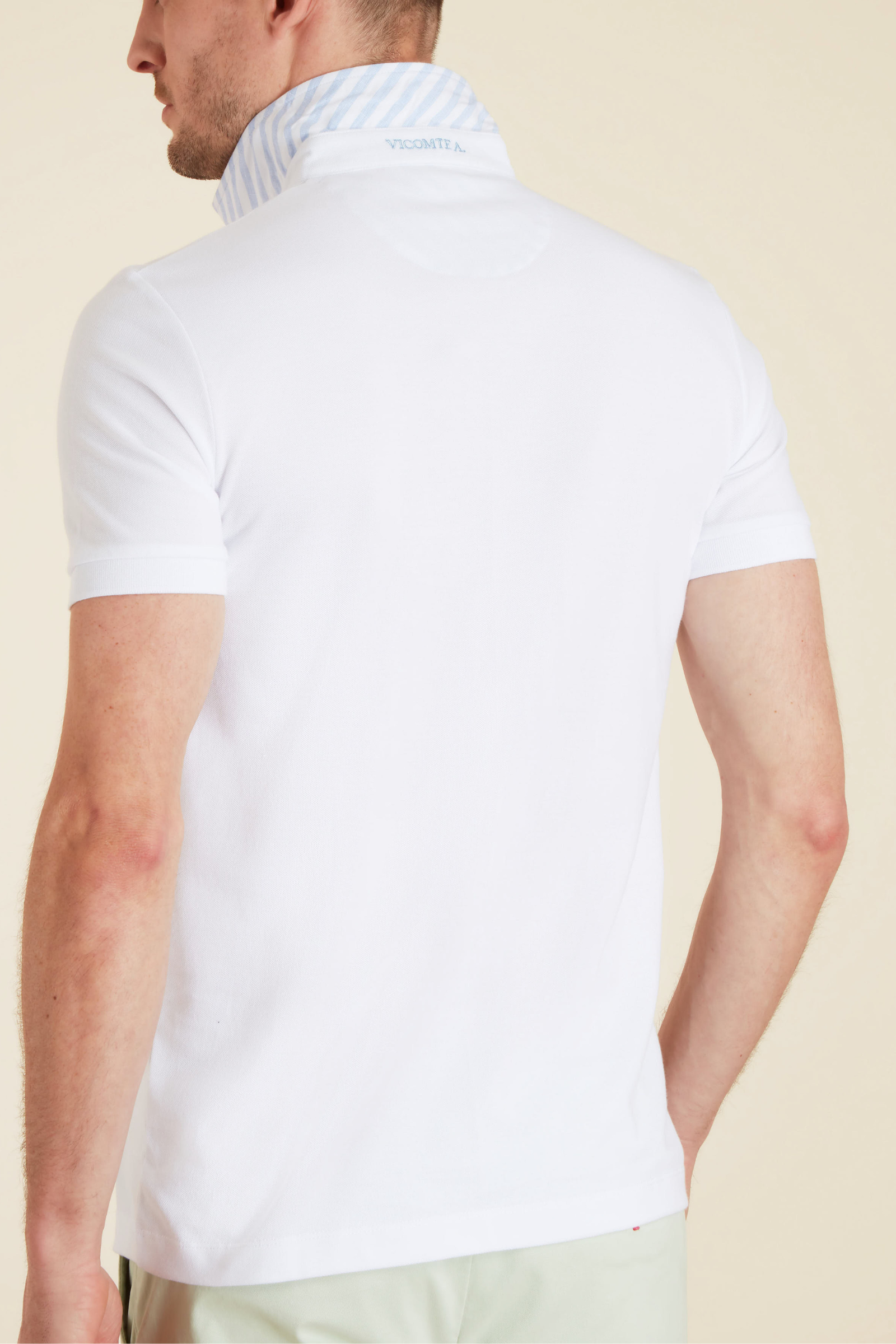 Le détail des rayures à l'envers du col apporte une touche discrète et originale à ce polo.