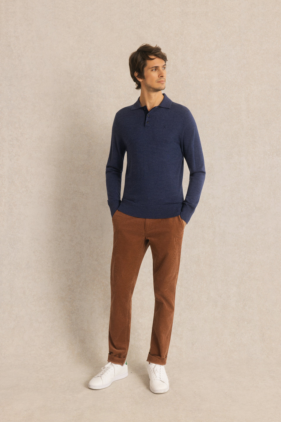 Confectionné en 100 % laine, ce pull à col polo incarne l’alliance parfaite entre confort naturel et allure sophistiquée. Sa maille fine, respirante et thermorégulatrice en fait une pièce idéale pour les journées d’été, sans compromis sur le style.
