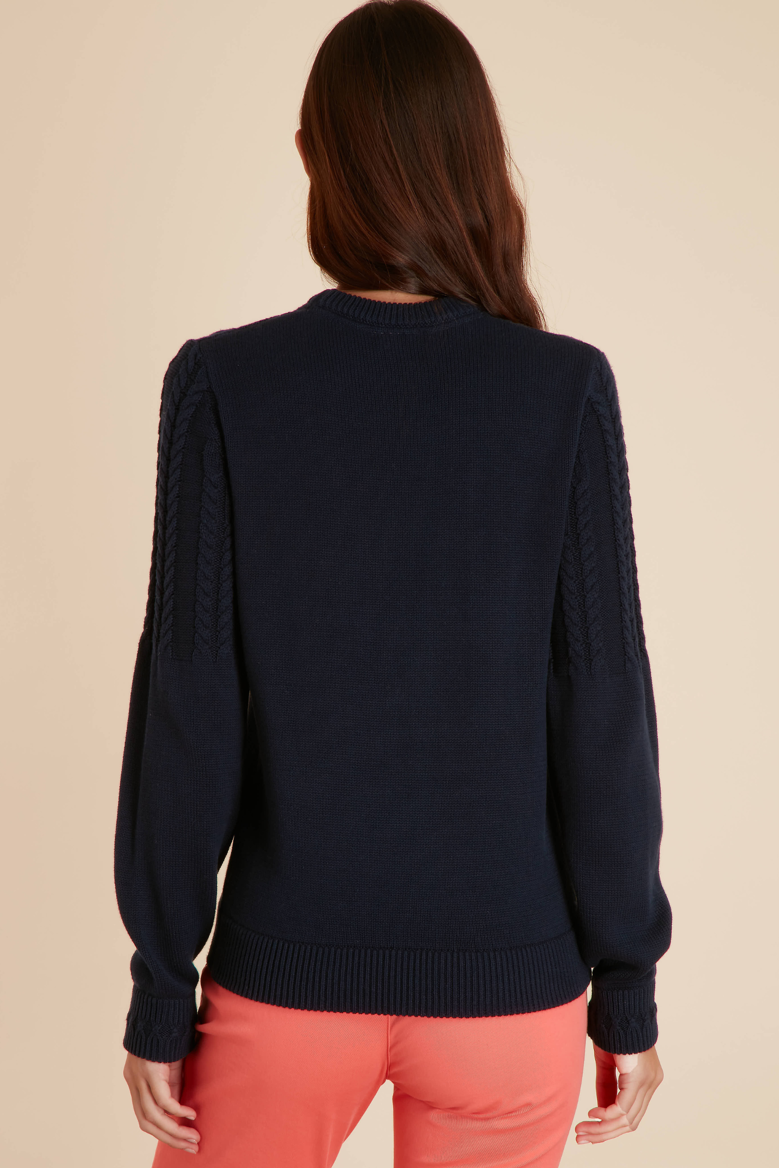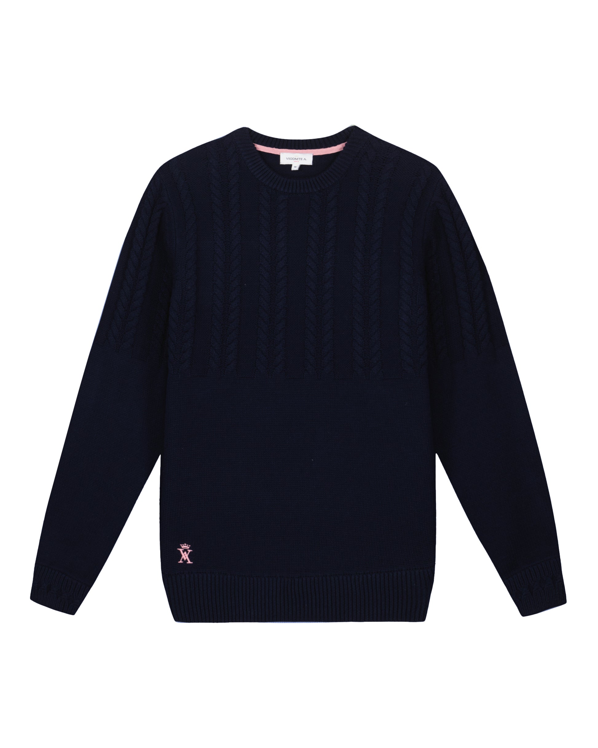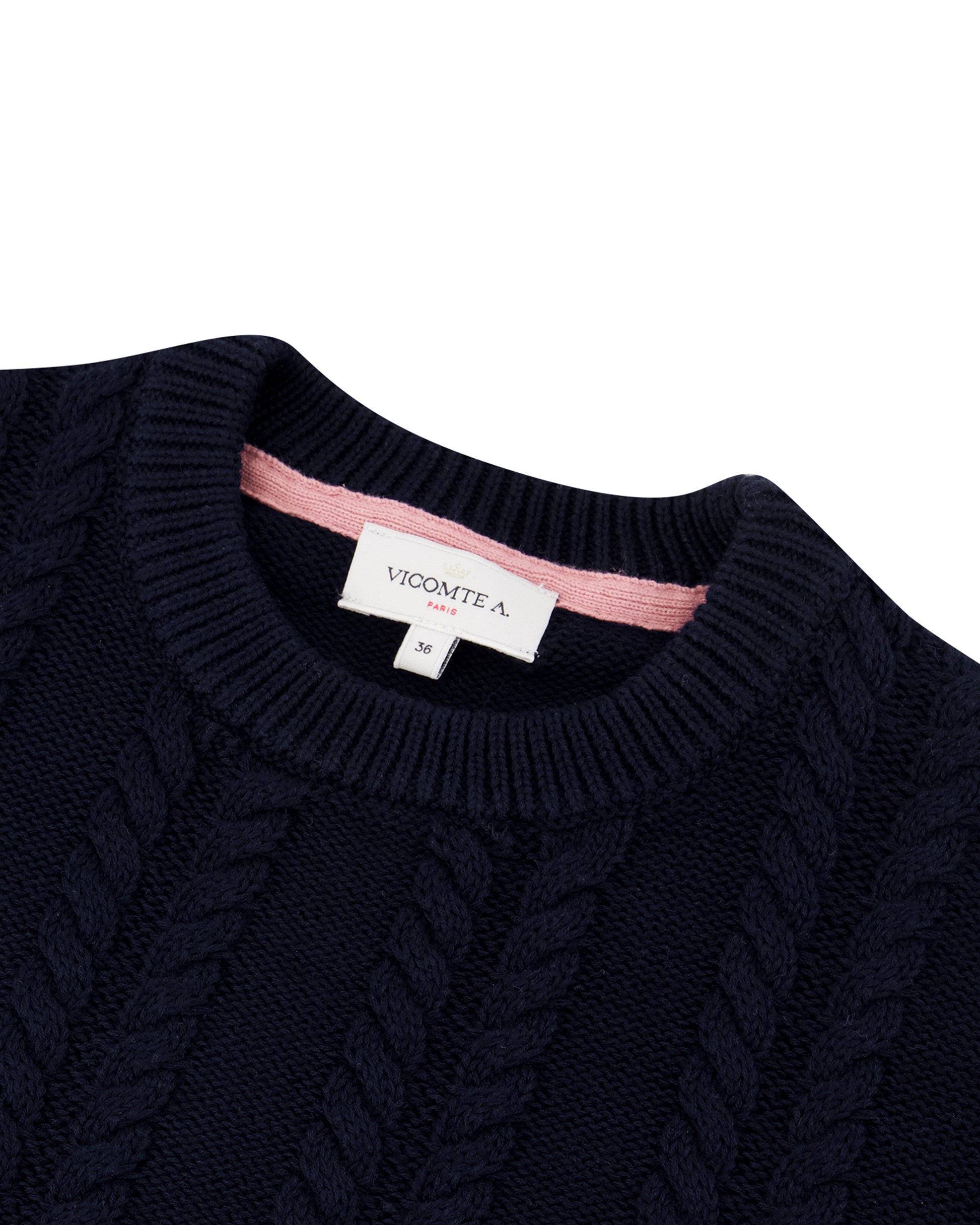 Détails : Torsades sur le devant et les manches, col rond