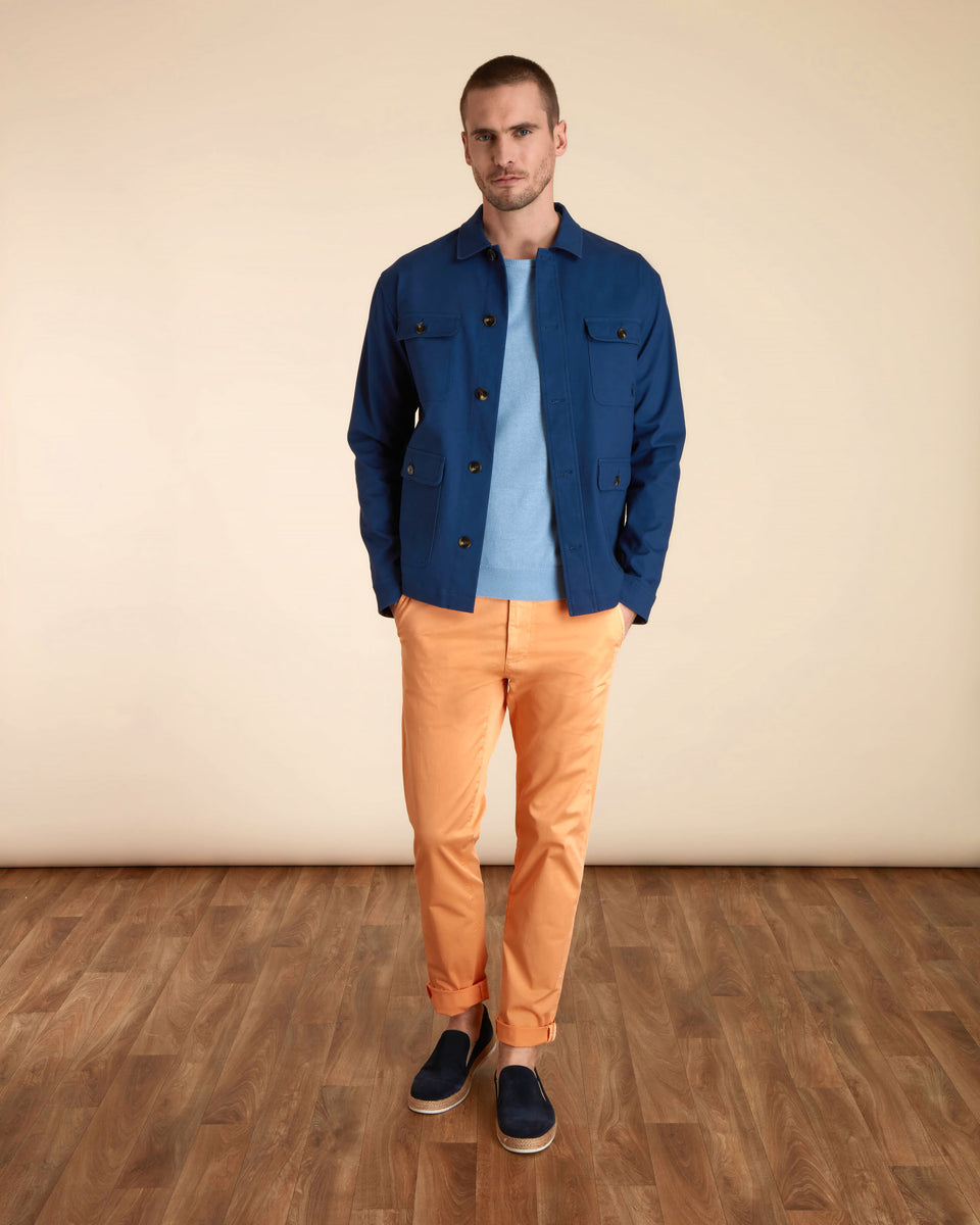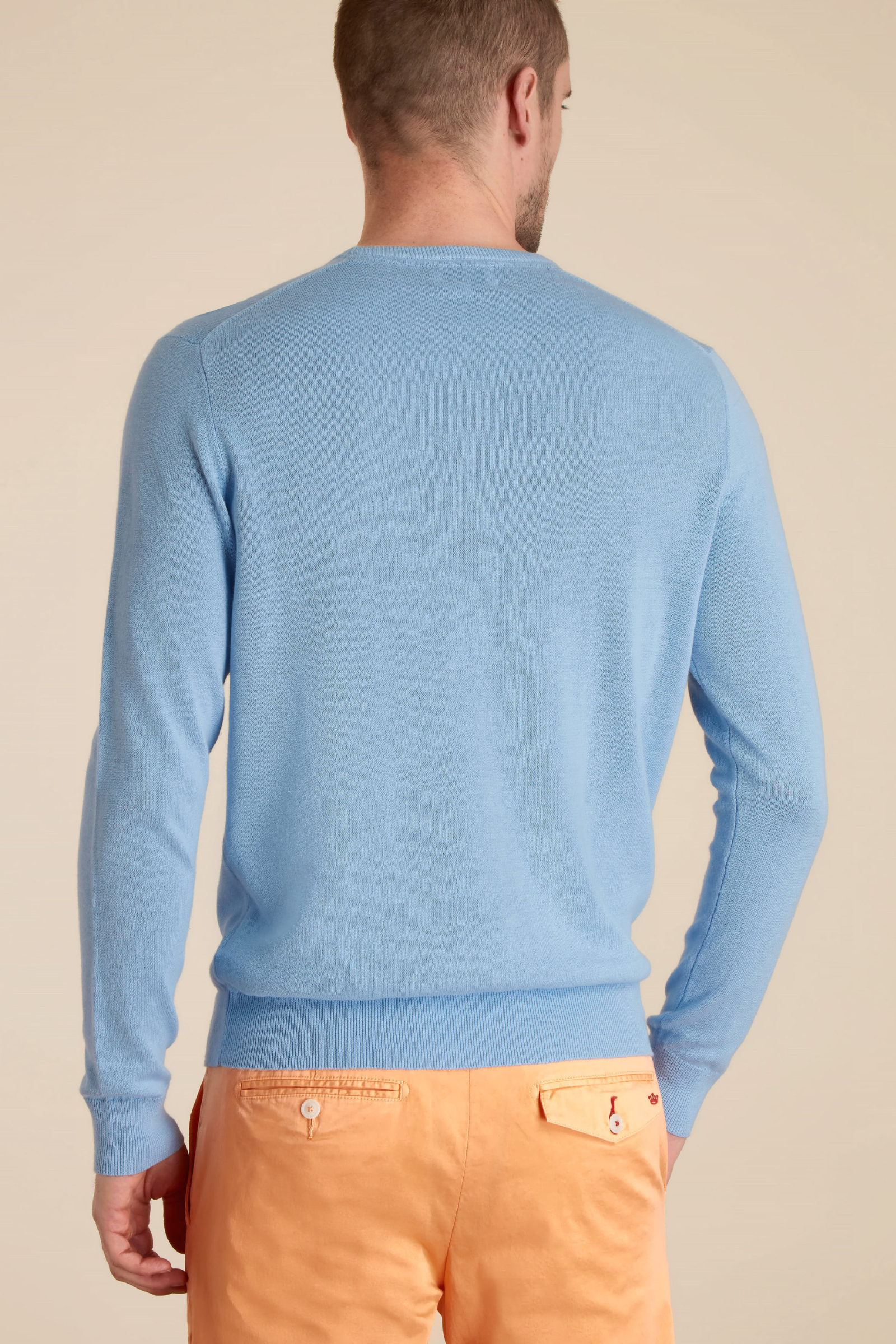 Le lin est l’une des fibres les plus résistantes dans le textile grâce à ses propriétés isolantes et thermorégulatrices. Mélangé à du coton pur, le résultat est un tissu frais et doux qui vous procure du confort. Découvrez notre pull Kasper en lin coton, idéal pour les soirées d'été. Portez-le avec les manches retroussées pour un look casual chic.