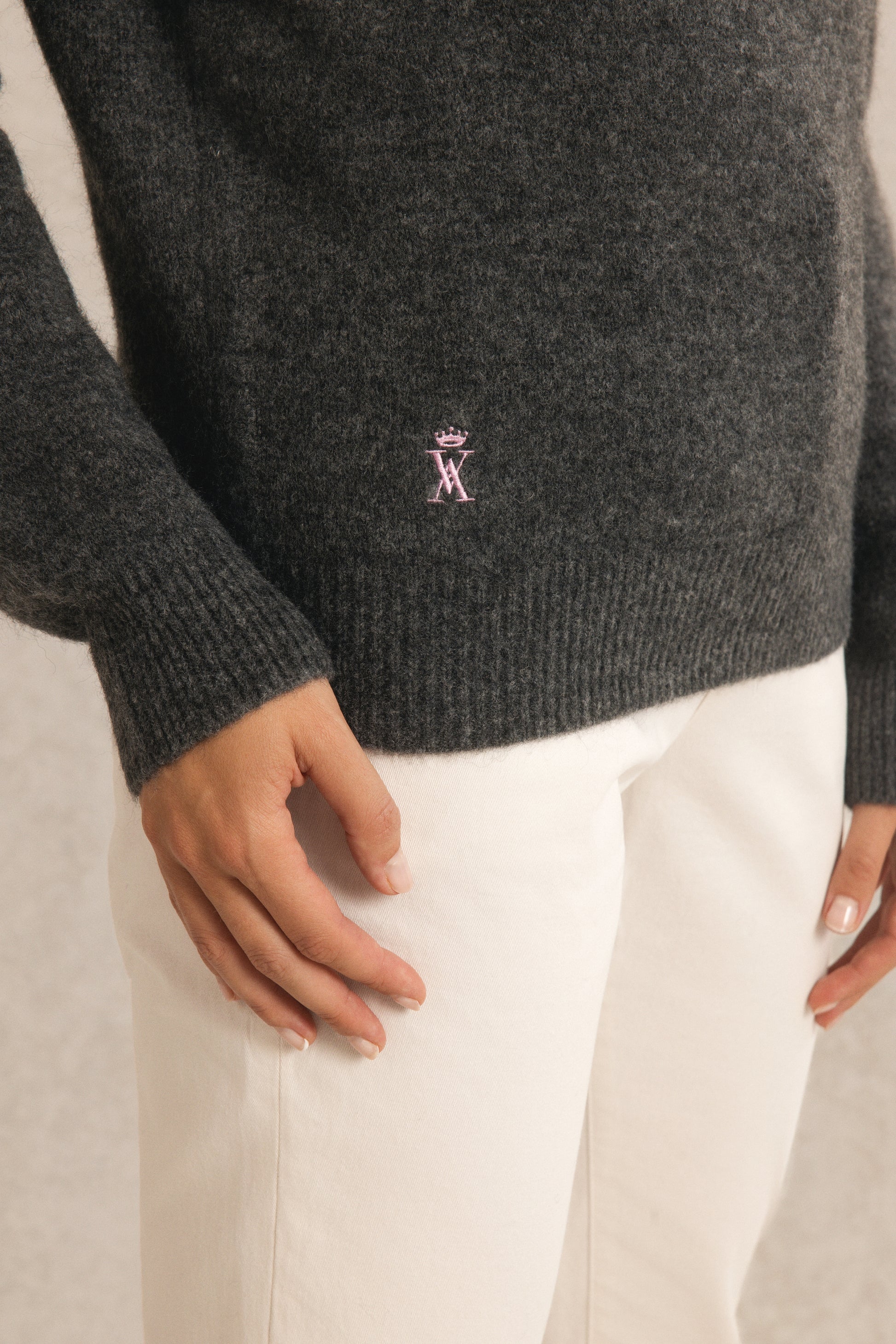 Finitions côtelées au col, poignets et ourlet