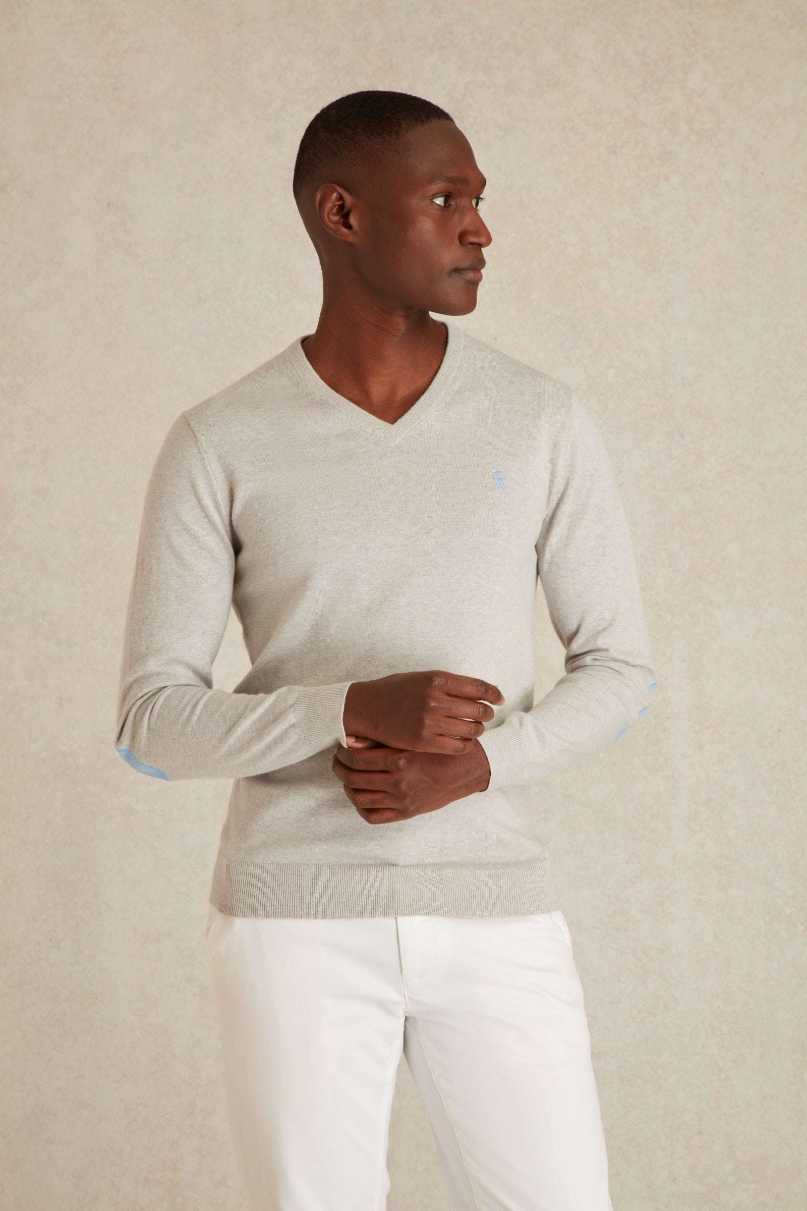 Optez pour un pull doux qui vous tiendra au chaud toute la mi-saison. Vicomte A. vous propose le pull Karl Homme avec un Col V et des coudières contrastées qui rajoutent une touche décalée et chic à votre look.
