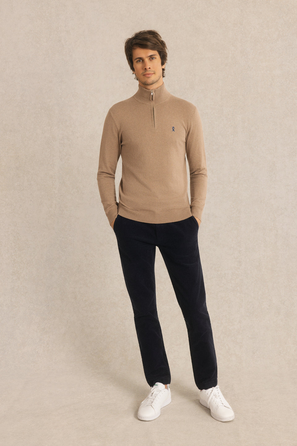 Confectionné dans du cachemire, Le pull Keaton est doté d'une fermeture zippée jusqu'à la poitrine. Ce pull est idéal pour les jours froid et est un bon compromis entre le col roulé et le col V (col ouvert). Associez votre pull zippé Keaton avec un pantalon Chino ou un blazer Vicomte A. pour rester élégant durant l'hiver.