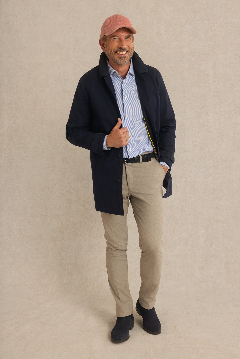 La veste de pluie Ottavio en coton est à la fois fonctionnelle et élégante, conçue pour vous protéger des intempéries tout en ajoutant une touche de style à votre garde-robe. Cette veste offre un confort optimal tout en étant légère et facile à porter.