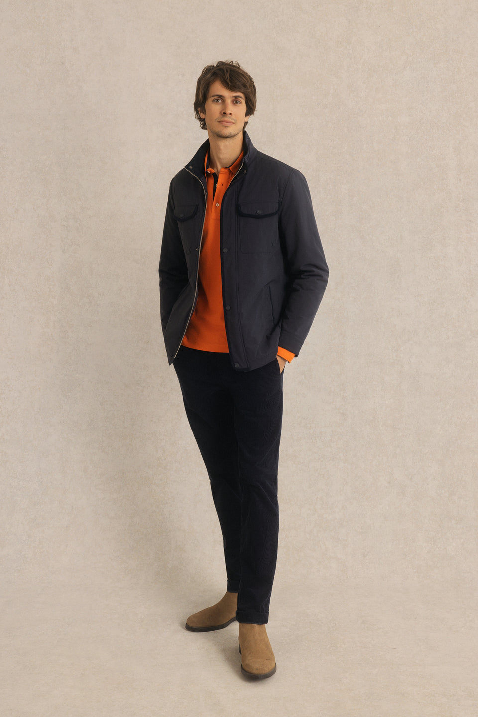 Pensé pour les journées capricieuses, le blouson Oriano associe fonctionnalité et style dans une version imperméable au design structuré.